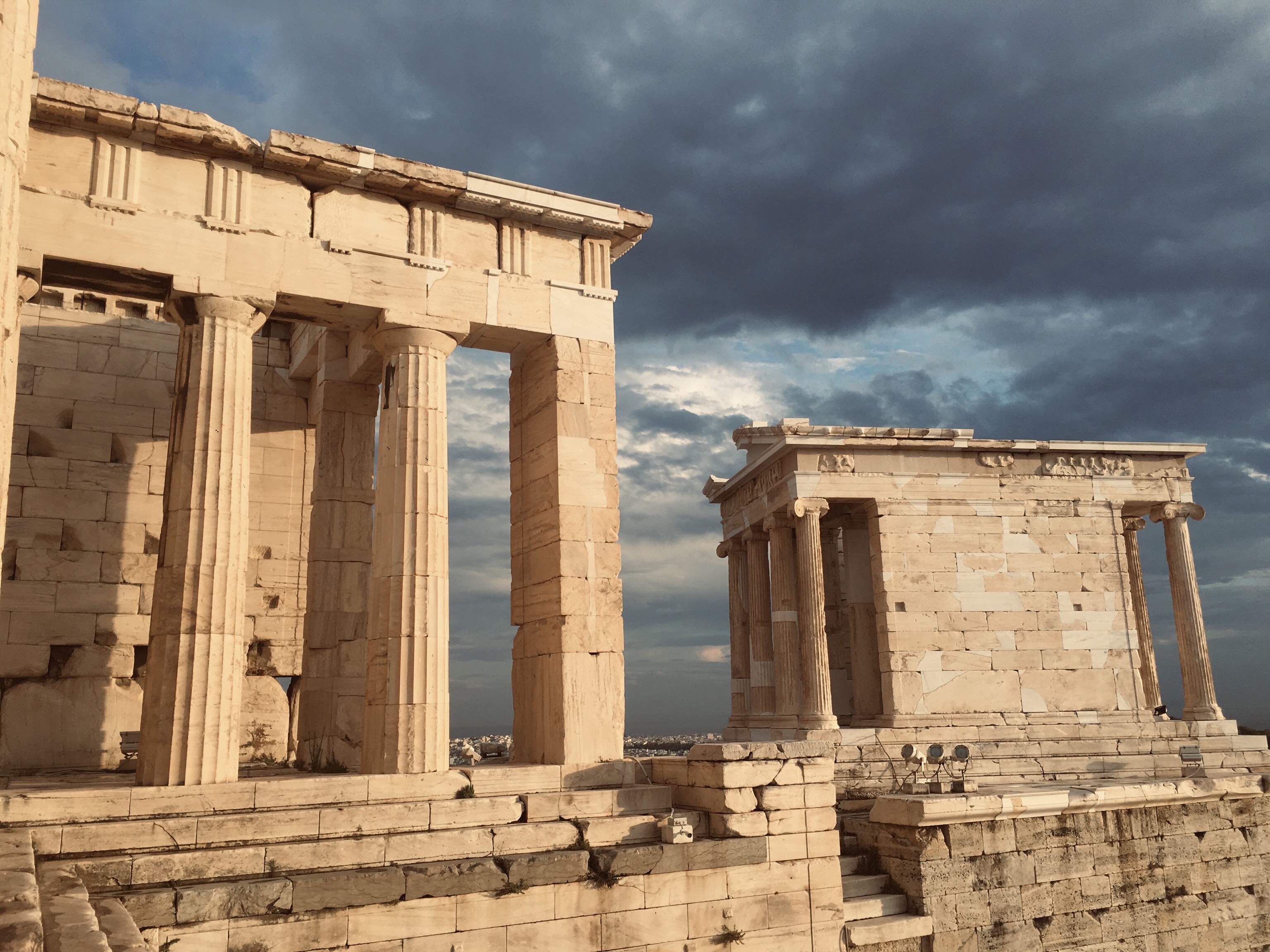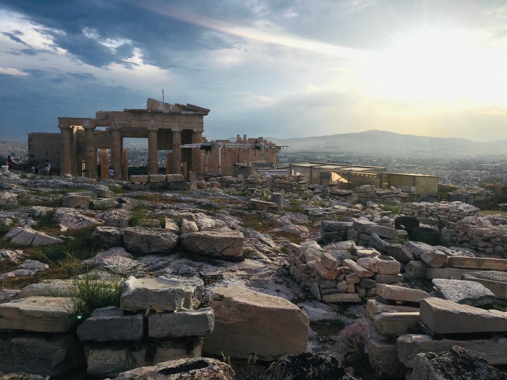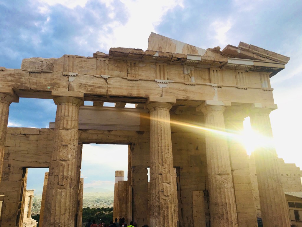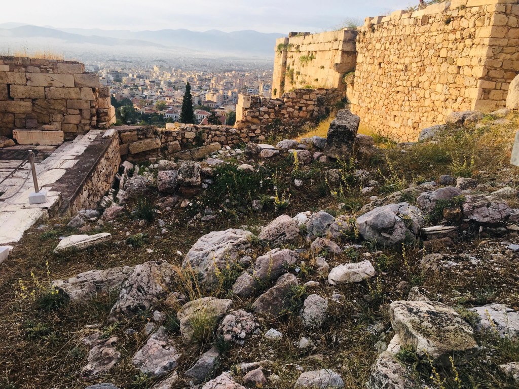After about half an hour of walking, I finally reached the top. As I was walking on the ruins of ancient buildings I felt gratitude, and respect, but at the same time I felt that a sacrilege was being committed; I felt that everything that was there had to be preserved with holiness. The view was amazing; all the houses of the inhabitants of Athens and its environs were looking as if they were carefully painted on the horizon, shining in the evening sun.