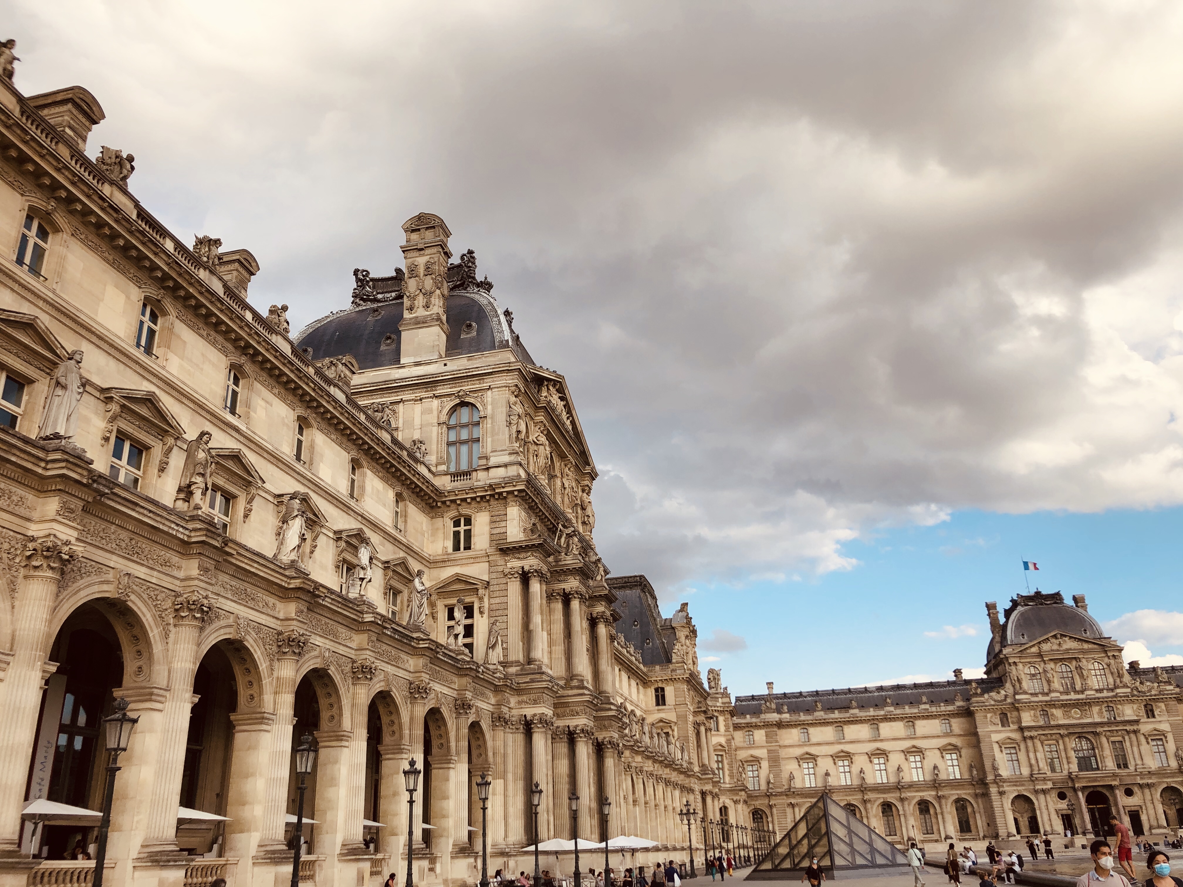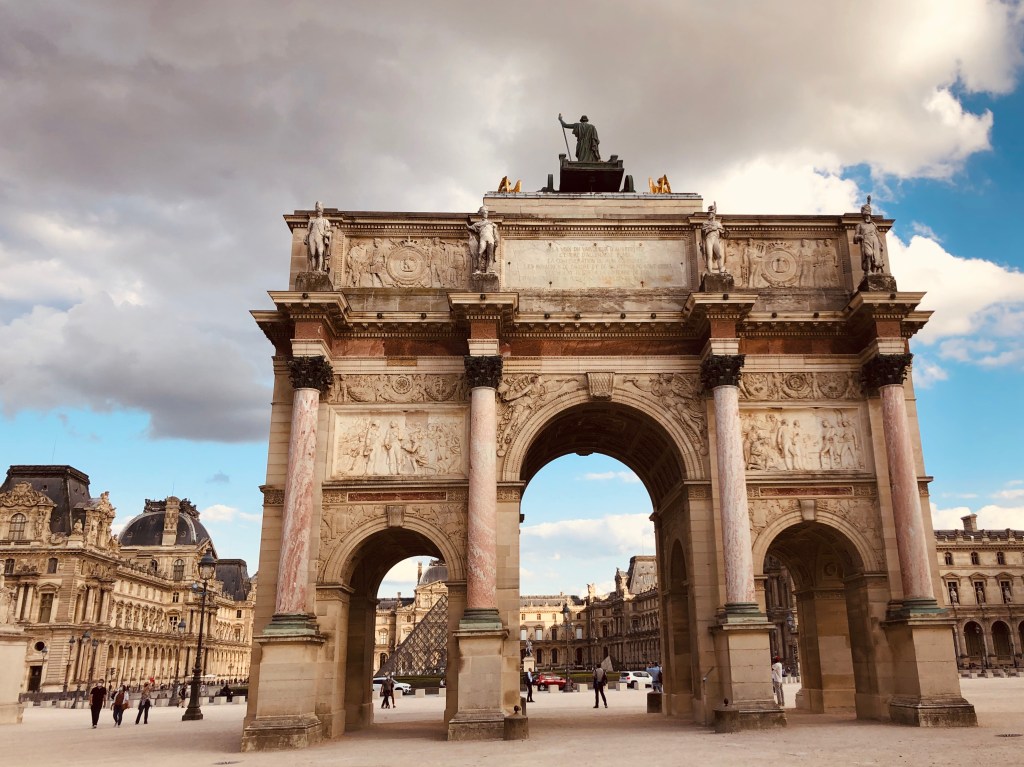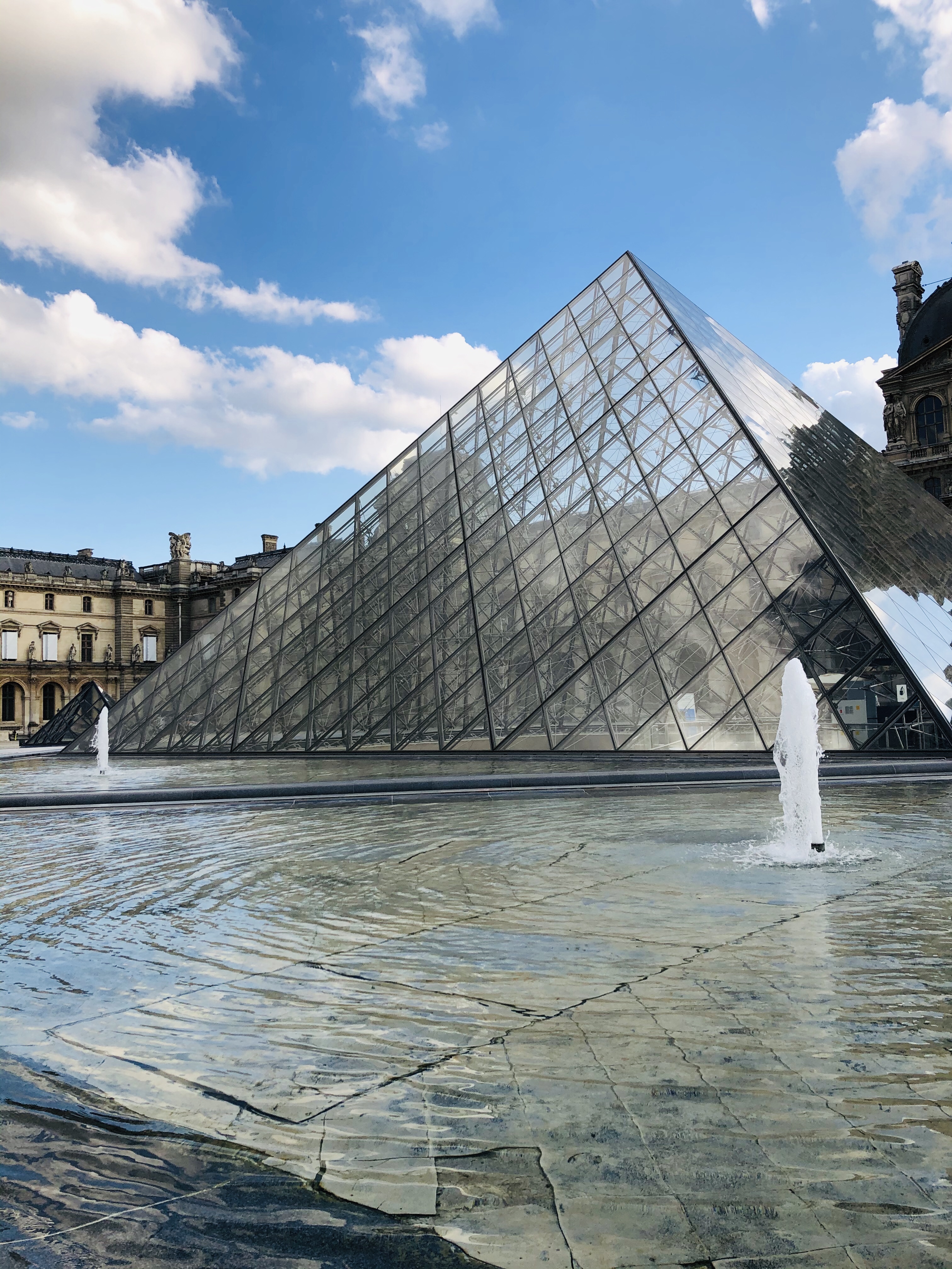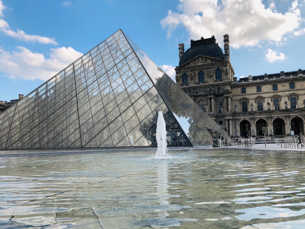 Finally, passing through the garden, I arrived at the Louvre Museum. I climbed the stairs overlooking the city and passed through a carved gate, a mini triumphal arch. In front of me, the museum was laid, with its emblematic crystal entrance, and on either side, on a considerable area, all its pavilions. In front of the entrance, there is a fountain that mirrors its silver image.