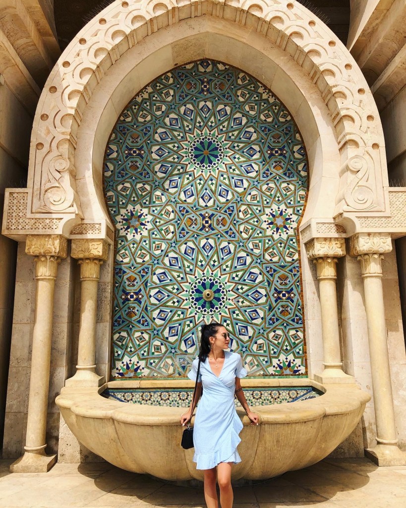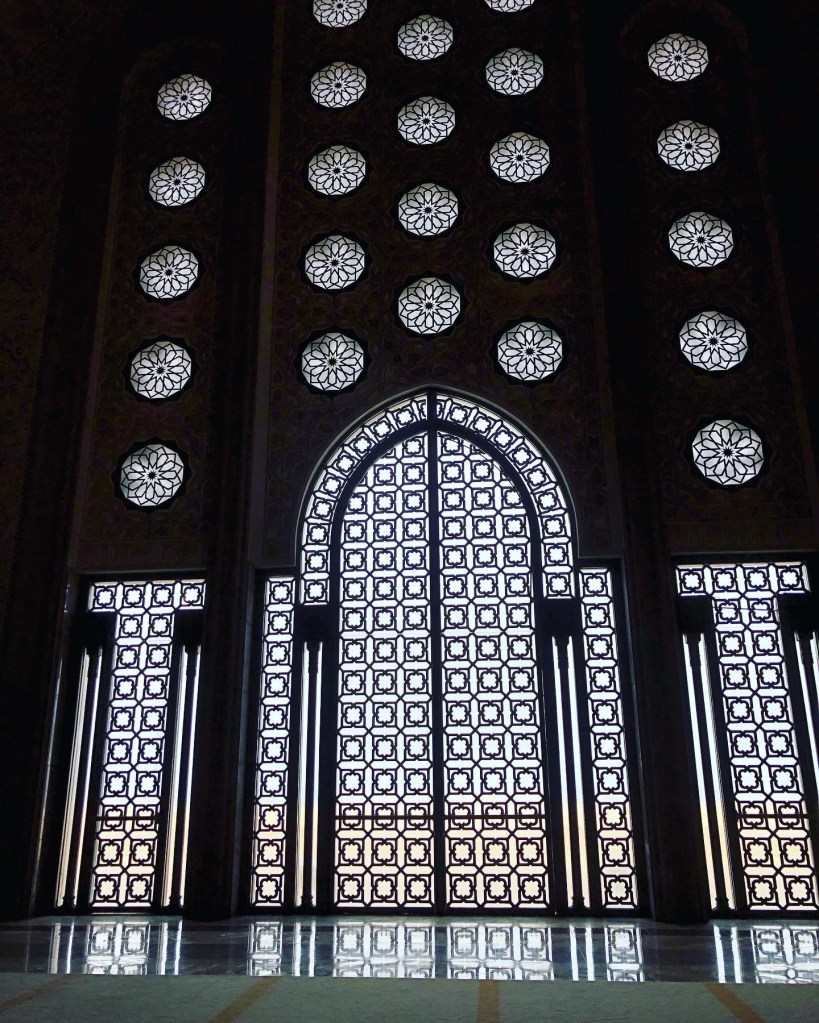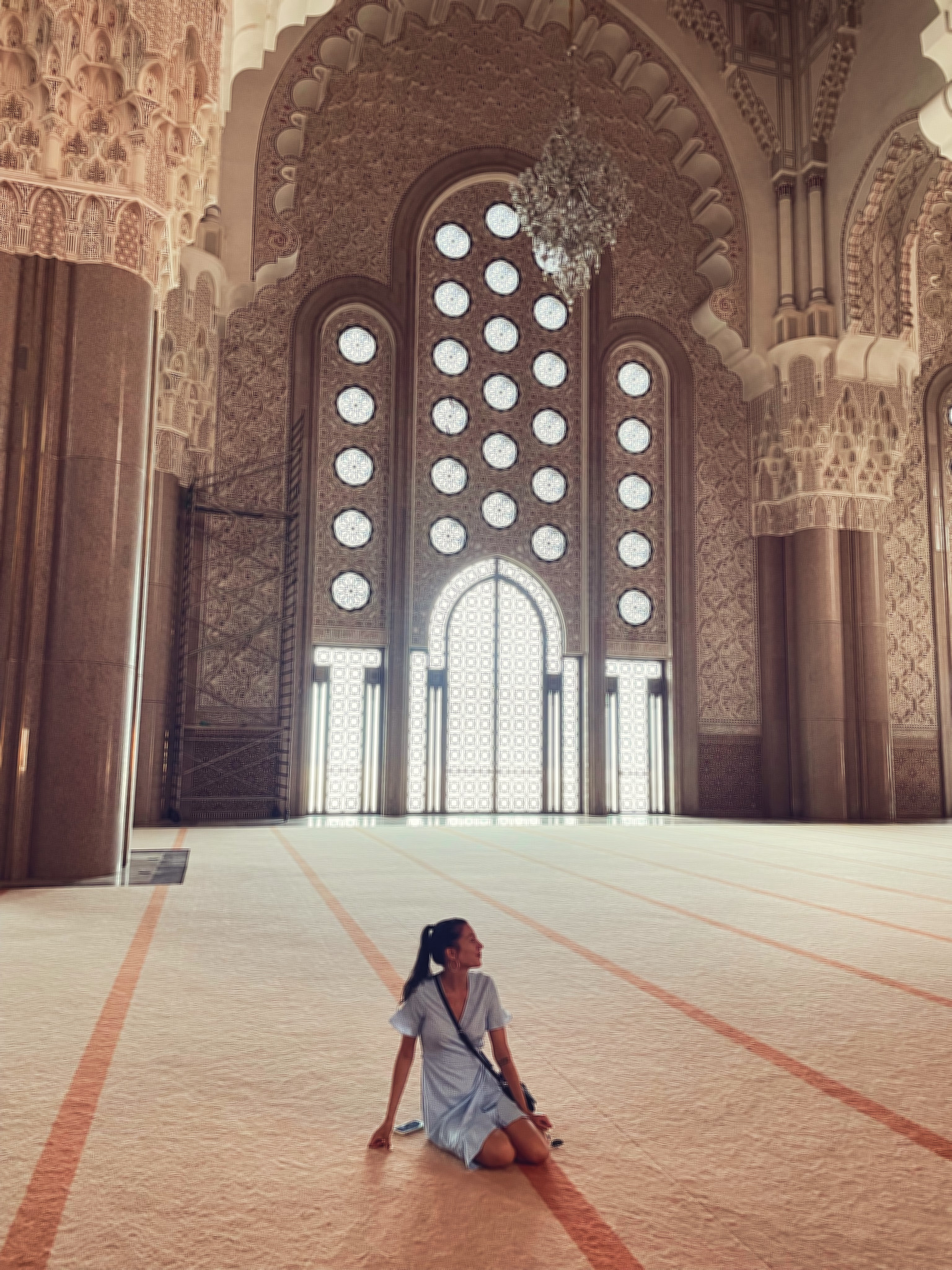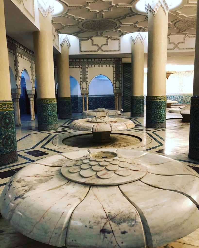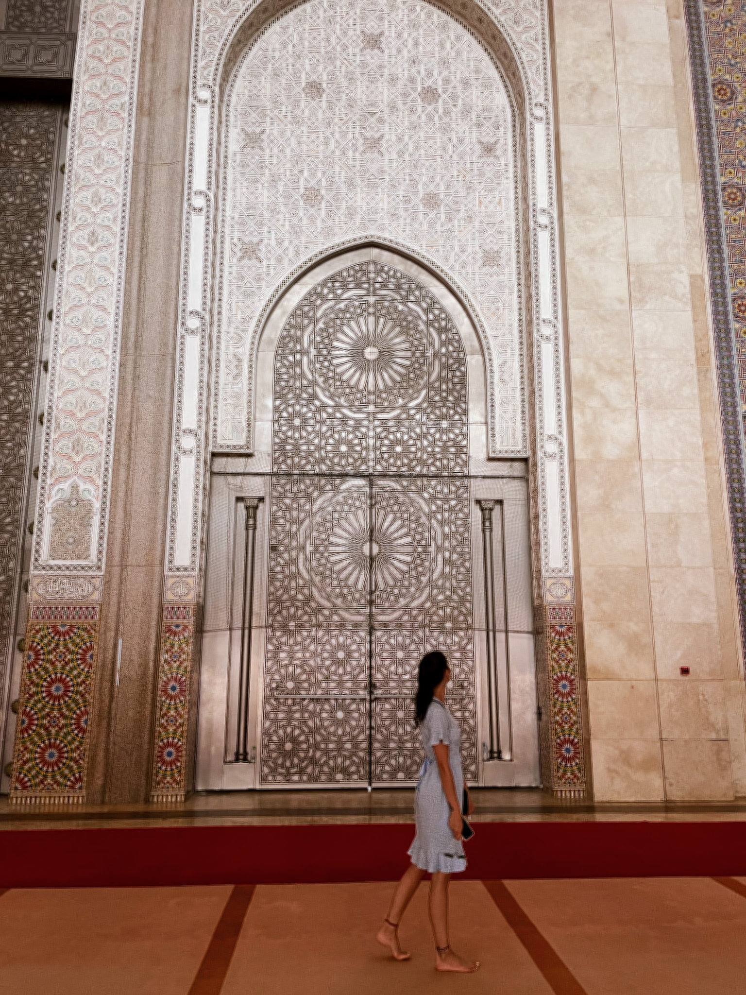 I found it extremely impressive, every detail on the walls, all the colors, all the precision; the big doors with incredible designs, the hand-placed pieces, the architecture. The moment you step your feet in, you feel like you’re in a special place right away. Men and women pray separately, and they have separate washing places as well. It is definitely one of the must-see places when you are in Casablanca.