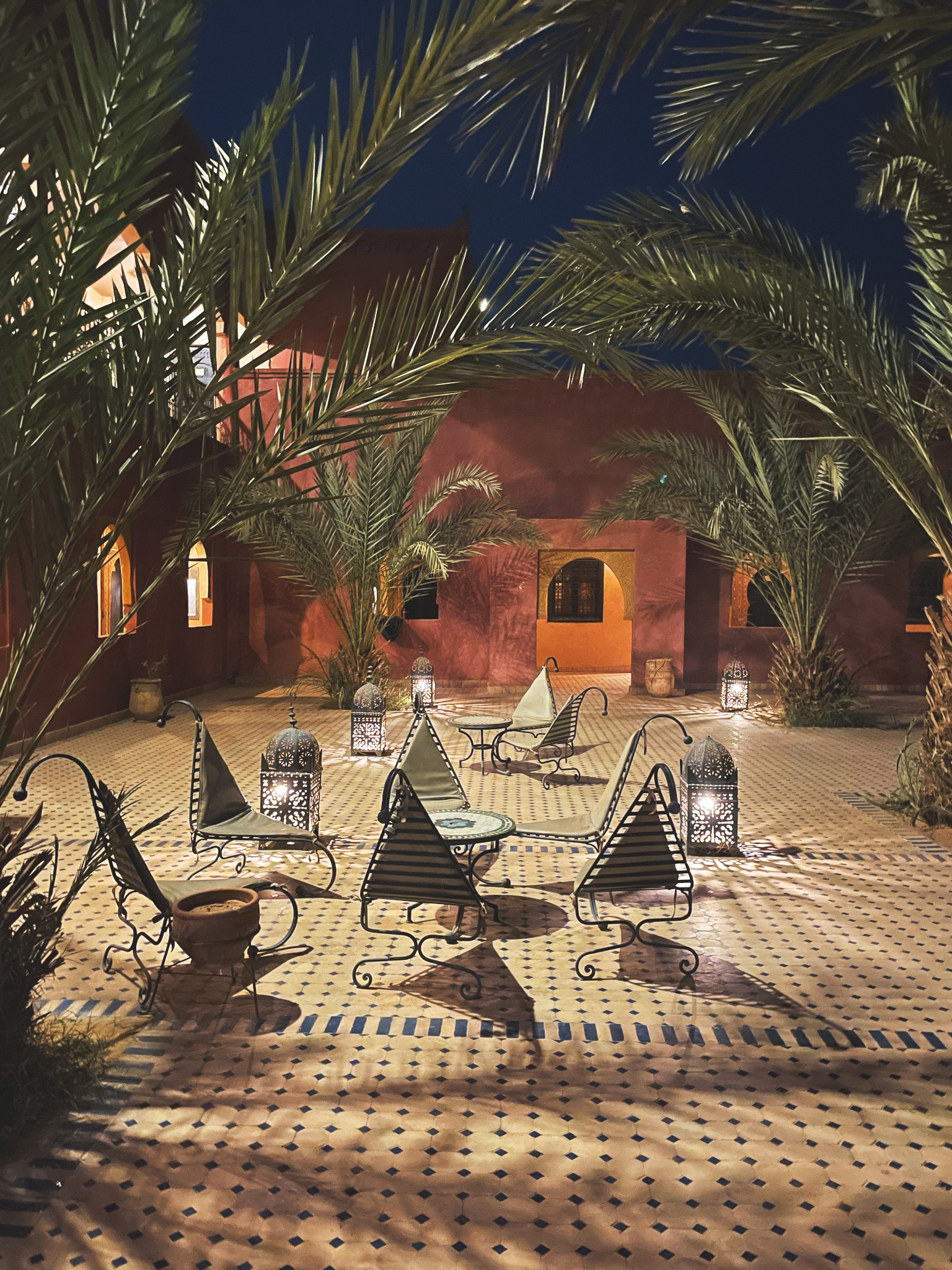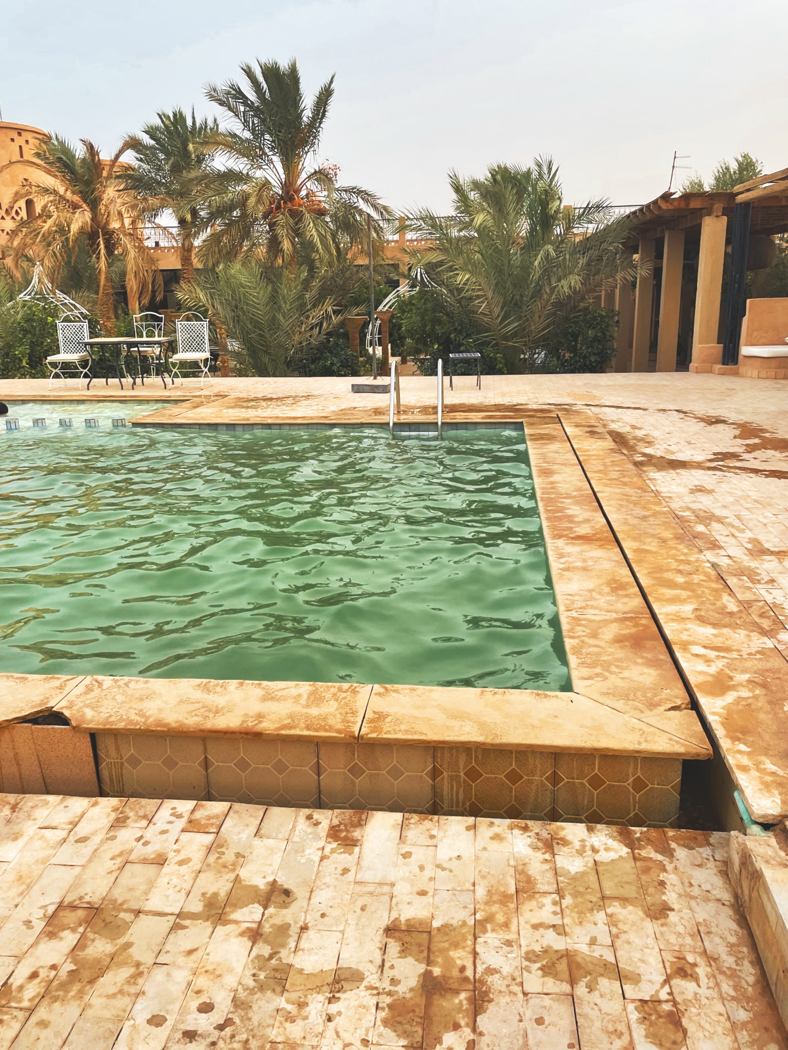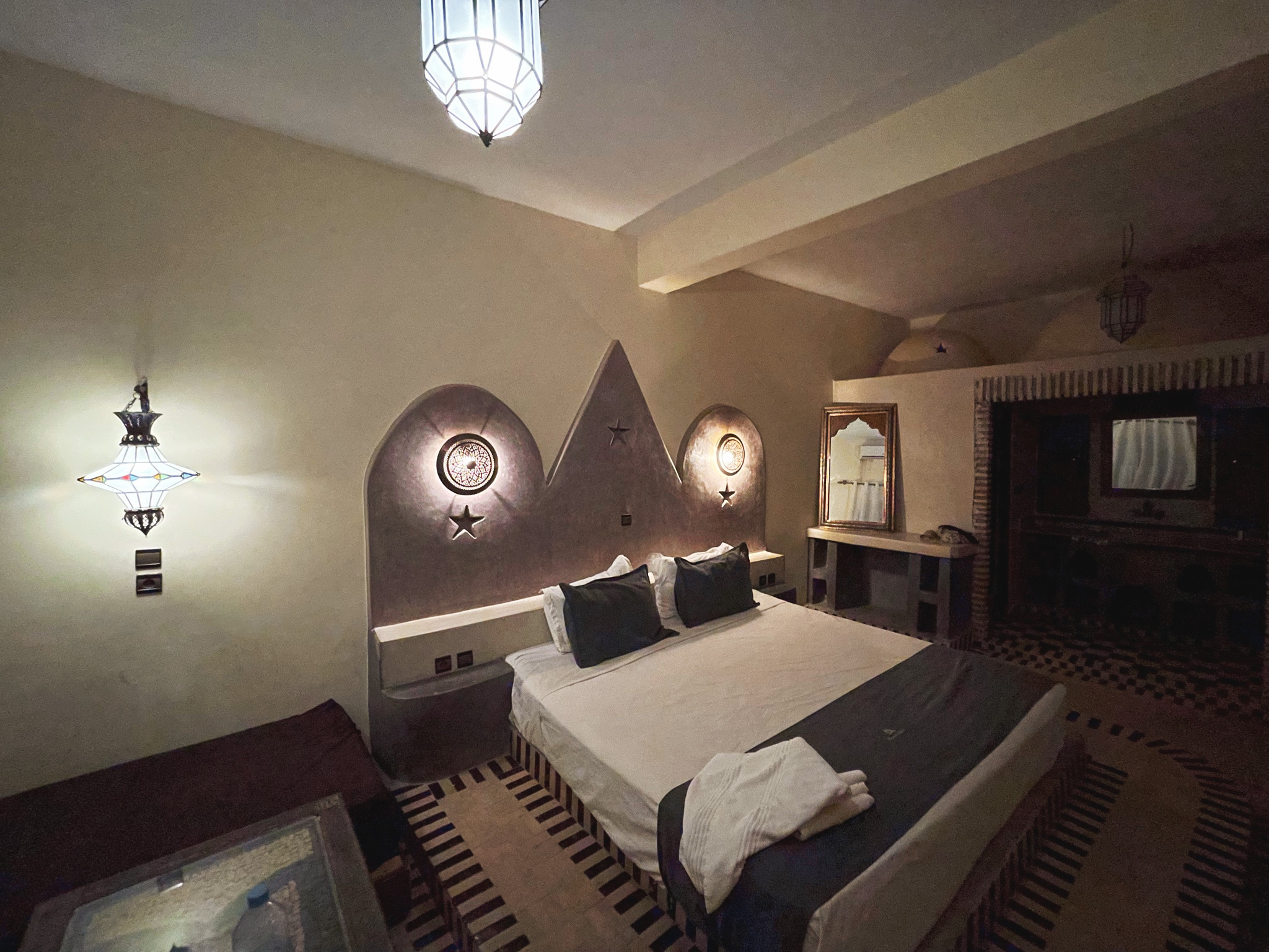 Merzouga has plenty of beautiful places to spend your days in, such as hotels, or luxurious camps right in the middle of the desert. We chose to stay at Nomad Palace, an incredible place with very wide and comfortable rooms, very traditionally decorated; it made me feel as if I am indeed sleeping in a nomadās modern house. It had two pools as well, one of them with desert views, a restaurant for breakfast, lunch and dinner, an interior yard, and much more. It was definitely a great and unique experience.